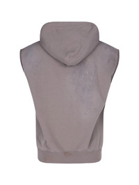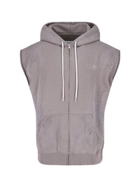 MM6 MAISON MARGIELA "NUMERIC" ZIP SWEATSHIRT IN GRAY COTTON BLEND WITH ALL-OVER WORN DETAILS, ALL-OVER MULTICOLOR PATENT LEATHER DETAILS, DRAWSTRING HOOD, SLEEVELESS, RAW CUT DETAIL, ZIP CLOSURE, CHEST LOGO PRINT, TWO SIDE POCKETS, RIBBED TRIM, STRAIGHT HEM. PRODUCT INFO PRODUCT CODE SH2HG0005 M25013803 COMPOSITION: 66% COTTON, 34% POLYESTER SIZE AND FIT: REGULAR FIT MADE IN: ITALY