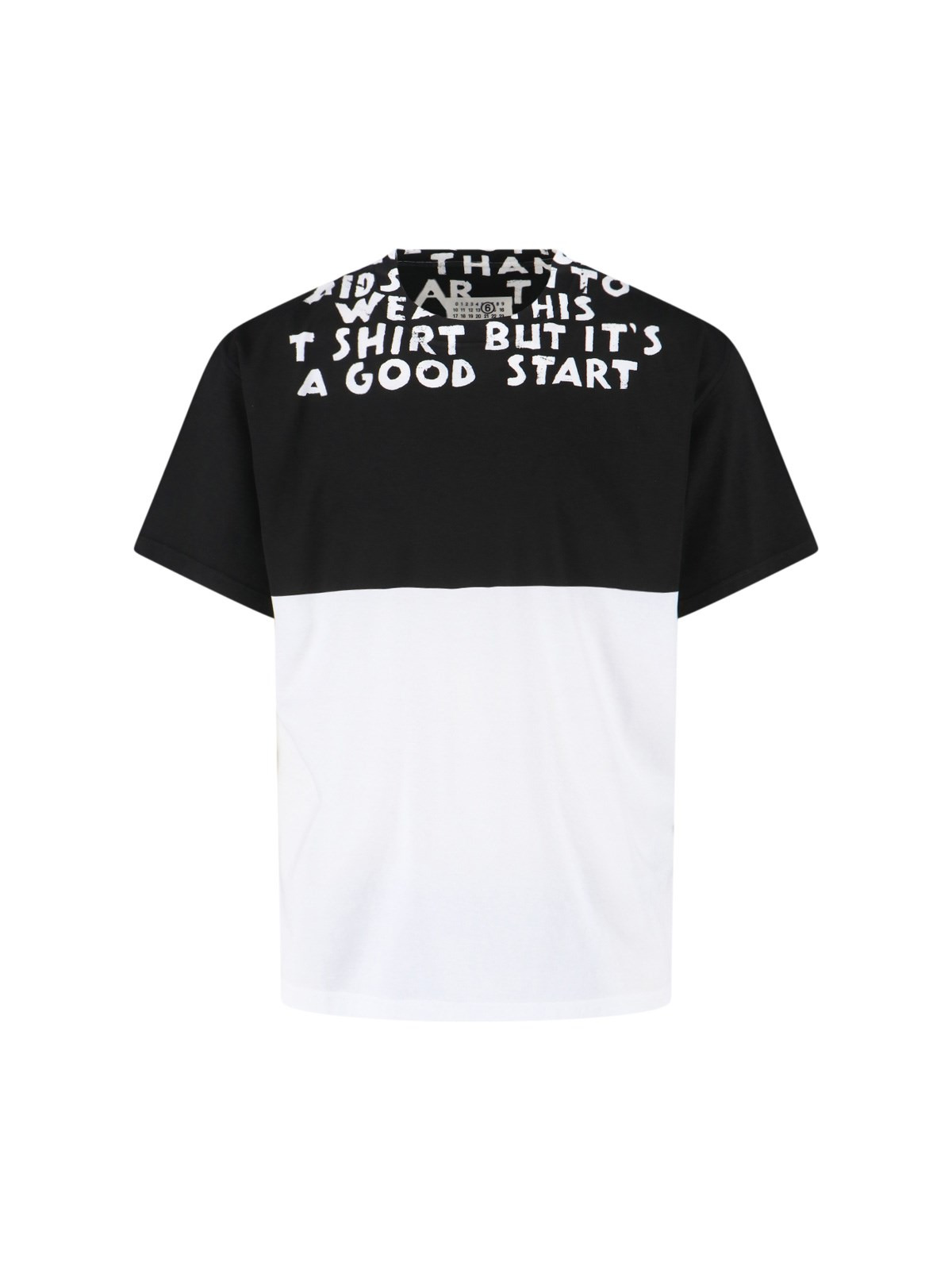 MM6 MAISON MARGIELA TWO-TONE LOGO T.SHIRT IN BLACK AND WHITE COTTON WITH CREW NECK, SHORT SLEEVES, MAXI CONTRAST PRINT ON THE FRONT, WHITE STITCHING ON THE BACK, MAXI CONTRAST PRINT ON THE BACK, STRAIGHT HEM. PRODUCT INFO PRODUCT CODE SH2GC0033 M20048100 COMPOSITION: 100% COTTON SIZE AND FIT: REGULAR FIT MADE IN: ITALY