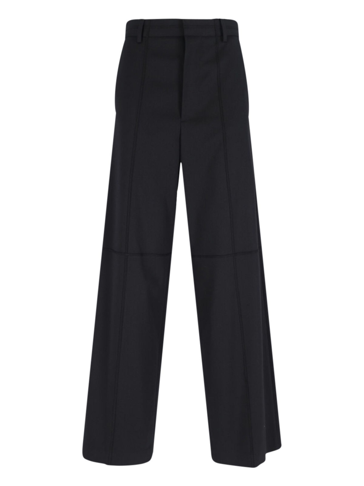 MAISON MARGIELA MM6 WIDE TROUSERS IN BLACK VIRGIN WOOL BLEND WITH MID WAIST, BELT LOOPS, HOOK AND HIDDEN ZIP CLOSURE, TWO SIDE POCKETS, CONTRASTING LOGO STITCHING AT THE BACK, WELT POCKET AND WIDE LEG. PRODUCT INFO PRODUCT CODE S52KA0543 S47848900 COMPOSITION: 54% POLYESTER, 44% VIRGIN WOOL, 2% ELASTANE SIZE AND FIT: REGULAR FIT MADE IN: ITALY
