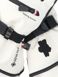 MONCLER GRENOBLE PADDED GLOVES IN WHITE AND BLACK LEATHER '2L 4-WAY STRETCH' TECHNICAL FABRIC WITH ZIP CLOSURE, INNER POCKET, ADJUSTABLE CUFFS, CONTRAST PRINTED LOGO DETAIL AT THE FRONT. PRODUCT INFO PRODUCT CODE 098 3A000 03 5985N036 COMPOSITION: 100% LEATHER, FABRIC MADE IN: VIETNAM - DETAILS: 100% LEATHER