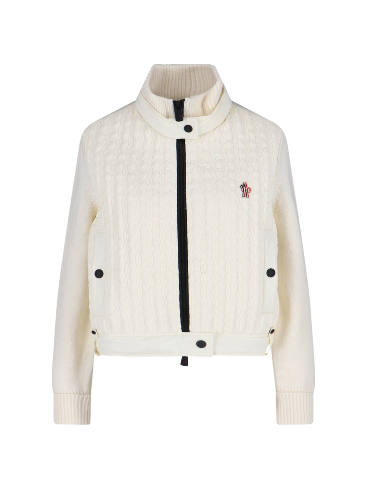 MONCLER GRENOBLE 'TRICOT' CARDIGAN IN WHITE VIRGIN WOOL KNITTED, HIGH NECK, BUTTON AND ZIP CLOSURE, CONTRAST LOGO PATCH AT THE FRONT, TWO SIDE BUTTON POCKETS, RIBBED CUFFS, STRAIGHT HEM. PRODUCT INFO PRODUCT CODE 098 9B000 14 M1131034 COMPOSITION: 100% VIRGIN WOOL SIZE AND FIT: REGULAR FIT MADE IN: MOLDOVA