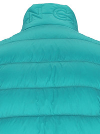MONCLER LOGO PADDED VEST IN LIGHT BLUE NYLON WITH HIGH NECK, DOUBLE ZIP CLOSURE, LIGHTNING LOGO CHARM DETAIL, MULTICOLOR LOGO PATCH ON THE CHEST, TWO SIDE ZIP POCKETS, BACK LOGO EMBROIDERY, STRAIGHT HEM. PRODUCT INFO PRODUCT CODE 091 1A000 03 597YF71Y COMPOSITION: 100% POLYAMIDE SIZE AND FIT: REGULAR FIT MADE IN: MOLDOVA - "NUMERIC" SIZE SCALE