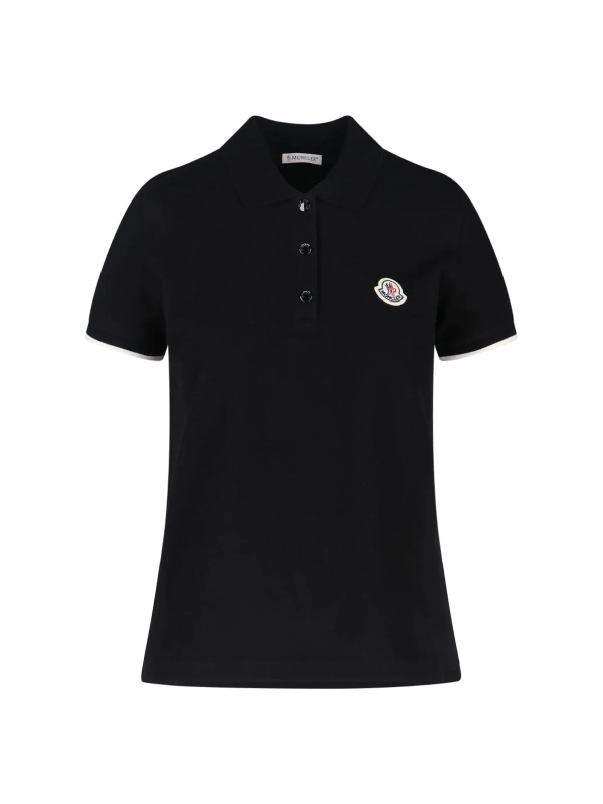 MONCLER LOGO POLO SHIRT IN BLACK COTTON WITH CLASSIC COLLAR, BUTTON CLOSURE, SHORT SLEEVES, FRONT LOGO PATCH, STRAIGHT HEM. PRODUCT INFO PRODUCT CODE 093 8A000 04 84720999 COMPOSITION: 100% COTTON SIZE AND FIT: REGULAR FIT MADE IN: TURKEY