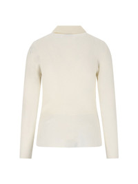 MONCLER LOGO RIBBED TOP IN CREAM COTTON BLEND WITH RIBBED PATTERN, CLASSIC COLLAR, BUTTON CLOSURE, MULTICOLOR LOGO PATCH ON THE SIDE, STRAIGHT HEM. PRODUCT INFO PRODUCT CODE 093 9A000 05 M1732035 COMPOSITION: 82% COTTON, 18% POLYAMIDE SIZE AND FIT: REGULAR FIT MADE IN: ROMANIA