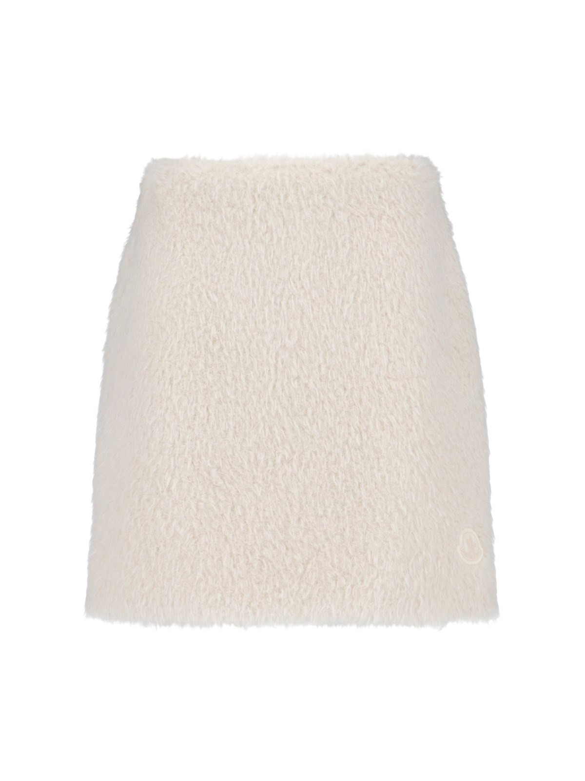 MONCLER MINI SKIRT IN WHITE FAUX FUR WITH HIGH WAIST, SIDE ZIP CLOSURE, TONE-ON-TONE EMBROIDERED LOGO PATCH ON THE SIDE, STRAIGHT HEM. PRODUCT INFO PRODUCT CODE 093 2D000 42 54AA4051 COMPOSITION: 100% POLYESTER SIZE AND FIT: REGULAR FIT MADE IN: HUNGARY