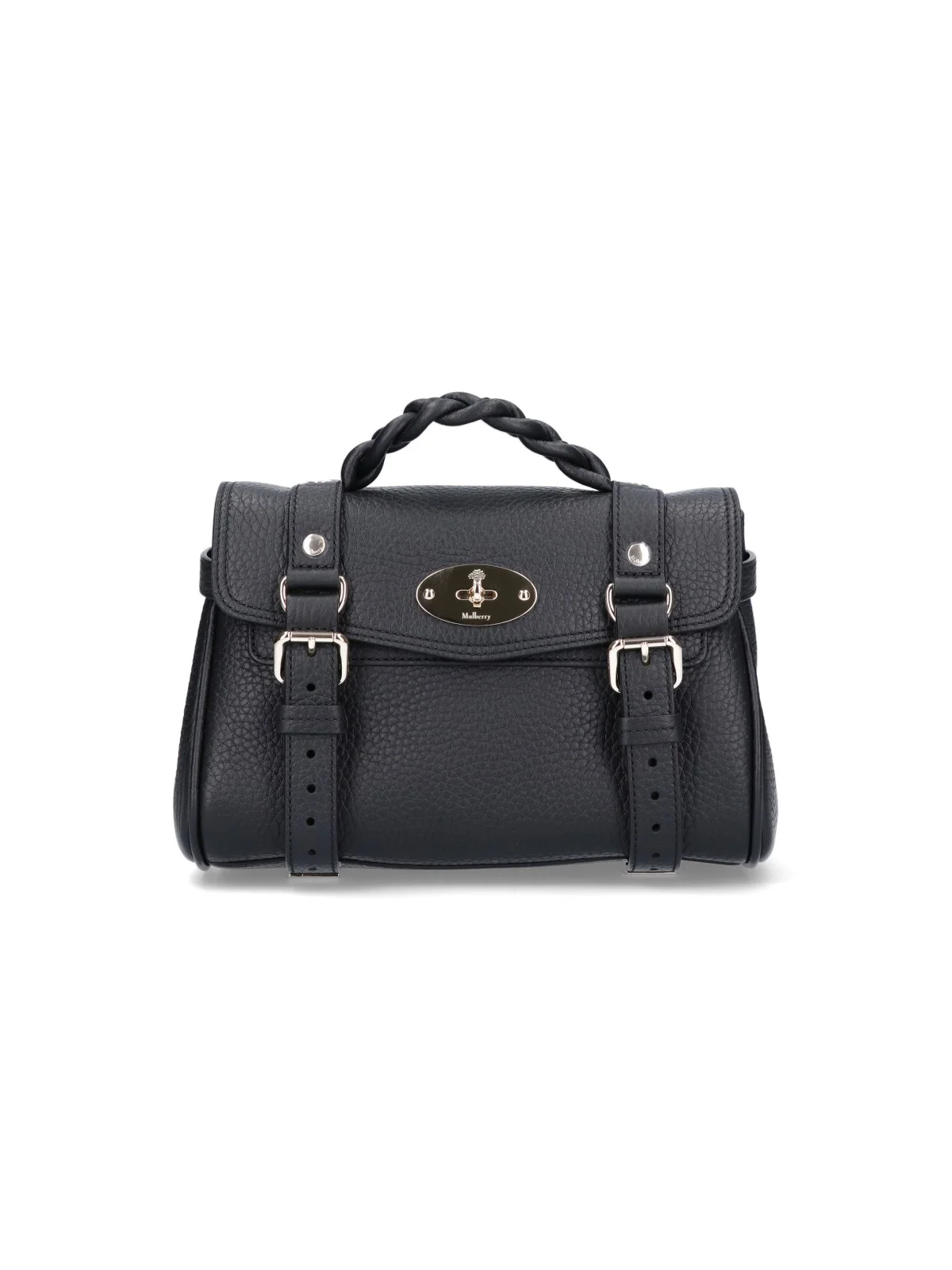 MULBERRY 'ALEXA' MINIBAG, LEATHER, BLACK COLOUR, SINGLE BRAIDED HANDLE, CLOSURE WITH ICONIC 'PORTSMAN'S LOCK' AND DOUBLE ADJUSTABLE BUCKLE STRAP, GOLD COLOURED METAL ELEMENTS, ADJUSTABLE SHOULDER STRAP. PRODUCT INFO PRODUCT CODE RL6595 736A100 - 100% LEATHER - H 17 X W 22 X D 10CM - SHOULDER STRAP DROP: 104 CM - MADE IN CHINA - RL6595 736-A100