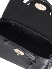 MULBERRY 'BAYSWATER SATCHEL' BAG IN BLACK HAMMERED LEATHER WITH TWO HANDLES, REMOVABLE RING KEYCHAIN DETAIL, ADJUSTABLE AND REMOVABLE SHOULDER STRAP, FLAP TURN-LOCK CLOSURE, ENGRAVED LOGO DETAIL, INNER ZIP POCKET, MAIN INNER COMPARTMENT. PRODUCT INFO PRODUCT CODE HH9216 205A100 COMPOSITION: 100% LEATHER SIZE AND FIT: H 16 X W 26 CM X D 8 CM MADE IN: TURKEY - HANDLE DROP: 8 CM - STRAP SPAN: 50-60 CM