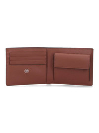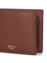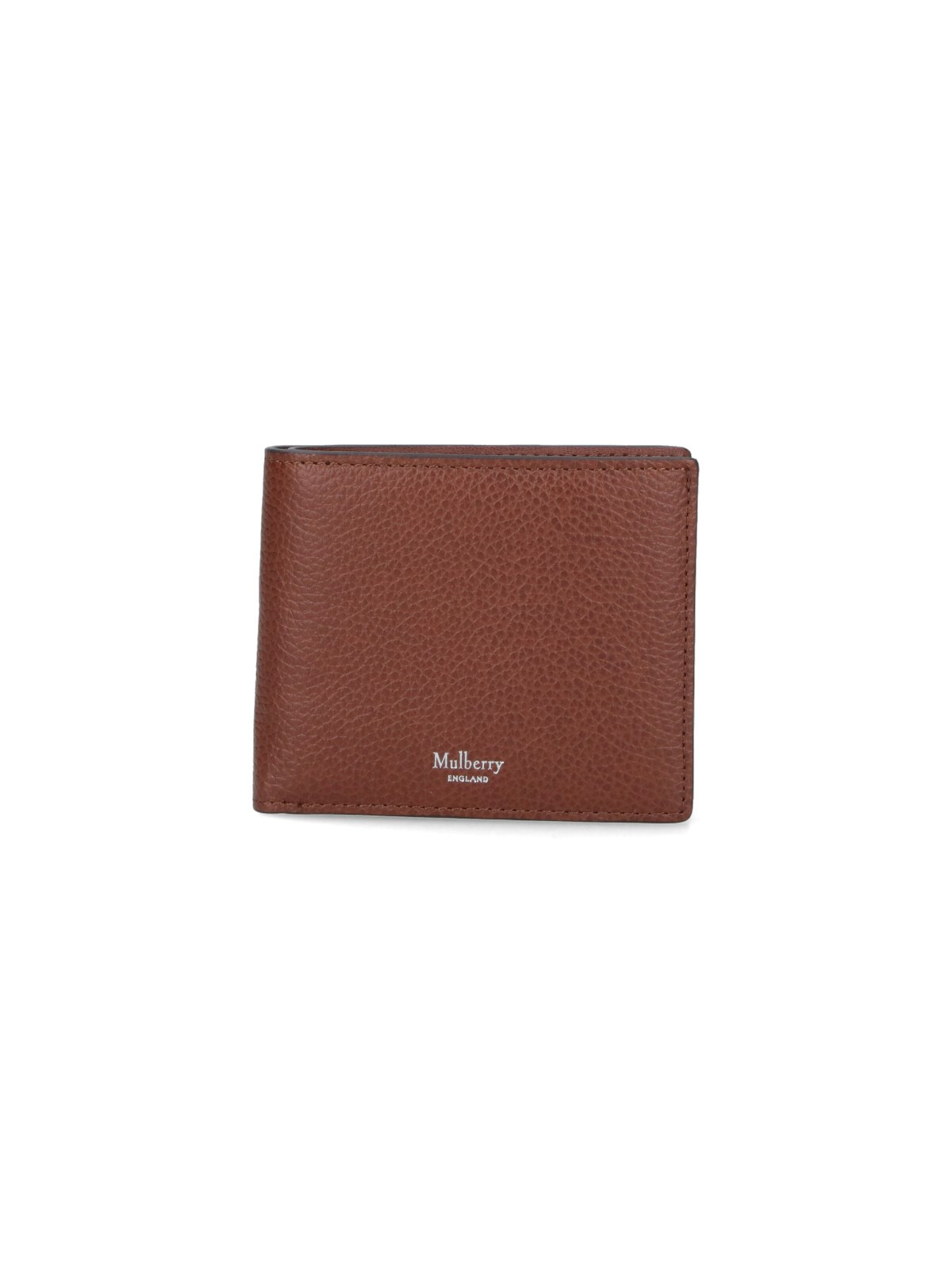 MULBERRY 'HERITAGE' BI-FOLD WALLET IN BROWN HAMMERED CALF LEATHER WITH SILVER LOGO PRINT ON THE FRONT, TOP BILL COMPARTMENT, FOUR CARD SLOTS, COIN COMPARTMENT, BUTTON CLOSURE DETAIL, INNER SILVER PRINT. PRODUCT INFO PRODUCT CODE RL8022 552G110 COMPOSITION: 100% CALF LEATHER SIZE AND FIT: H 9.5 X W 11.5 X D 2 CM MADE IN: TURKEY - DETAIL: 100% BRASS