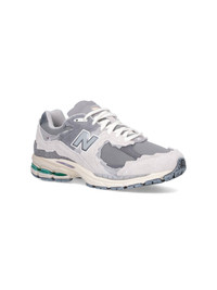 NEW BALANCE 2002R PROTECTION PACK SNEAKERS IN LIGHT SHADE GRAY SUEDE WITH MESH TRIM, ALL-OVER DESTROYED DETAILS, ROUND TOE, LOGO EMBROIDERY DETAIL, LACE-UP CLOSURE, CUT-OUT DETAIL ON TONGUE, SIDE LOGO PATCH, TEXTURED RUBBER SOLE. PRODUCT INFO PRODUCT CODE M2002RDA COMPOSITION: 100% LEATHER MADE IN: CHINA - TRIMS: 100% MESH - SOLE: 100% RUBBER