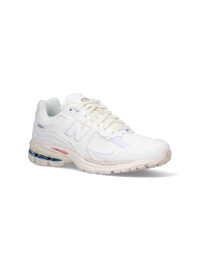 NEW BALANCE 2002R PROTECTION PACK SNEAKERS IN WHITE SUEDE WITH MESH TRIM, ALL-OVER DESTROYED DETAILS, ROUND TOE, LOGO EMBROIDERY DETAIL, LACES, CUT-OUT DETAIL ON TONGUE, SIDE LOGO PATCH, AND TEXTURED RUBBER SOLE. PRODUCT INFO PRODUCT CODE M2002RDC COMPOSITION: 100% LEATHER MADE IN: VIETNAM - TRIMS: 100% MESH - SOLE: 100% RUBBER