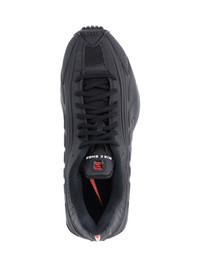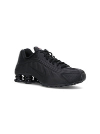 NIKE "SHOX R4" SNEAKERS IN BLACK LEATHER WITH TODA TOE, LACE-UP CLOSURE, LOGO DETAIL ON TONGUE, TONE-ON-TONE SIDE "SWOOSH" LOGO, CONTRASTING TAB LOGO ON THE BACK, FOUR COLUMNS "SHOX" SOLE DETAIL, RUBBER SOLE. PRODUCT INFO PRODUCT CODE AR3565004 COMPOSITION: 100% LEATHER MADE IN: INDONESIA - SOLE: 100% RUBBER