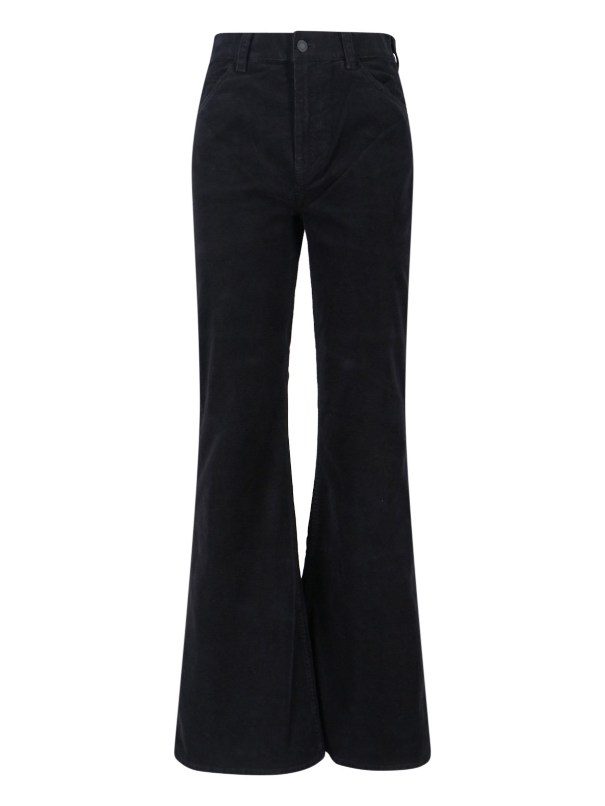 NILI LOTAN BOOTCUT TROUSERS IN BLACK CORDUROY WITH HIGH WAIST, BELT LOOPS, BUTTON AND ZIP CLOSURE, FIVE-POCKET DESIGN, FLARED LEG. PRODUCT INFO PRODUCT CODE 13135 W590JBL COMPOSITION: 93% COTTON, 6 POLYESTER, 1% SPANDEX SIZE AND FIT: REGULAR FIT