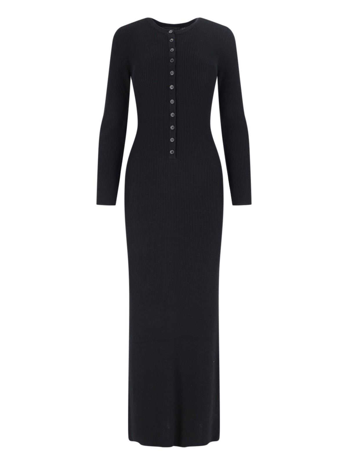 NILI LOTAN 'ROXY' KNIT MAXI DRESS IN BLACK WOOL WITH RIBBED PATTERN, CREW NECK, BUTTON CLOSURE, STRAIGHT HEM. PRODUCT INFO PRODUCT CODE 81306 Y072BLK COMPOSITION: 100% WOOL SIZE AND FIT: REGULAR FIT MADE IN: CHINA