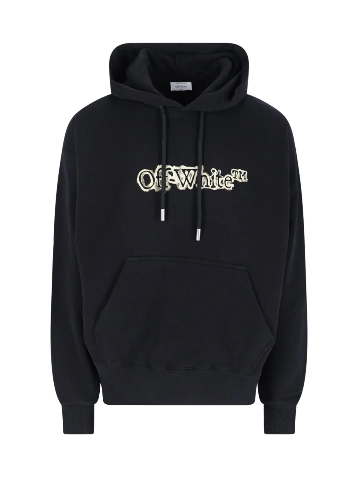 OFF-WHITE 'CLOUDY ARROW SKATE' BLACK COTTON HOODIE WITH DRAWSTRING HOOD, CONTRAST LOGO PRINT ON THE FRONT, MAXI FRONT POCKET, MAXI LOGO PRINT ON THE BACK, RIBBED TRIMS, STRAIGHT HEM. PRODUCT INFO PRODUCT CODE OMBB085F25FLE00L1019 COMPOSITION: 100% COTTON SIZE AND FIT: REGULAR FIT MADE IN: PORTUGAL