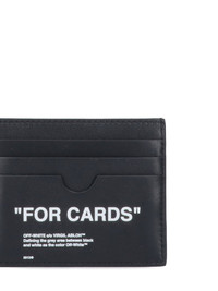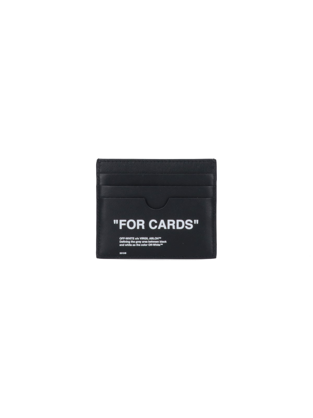 OFF-WHITE 'FOR CARDS' CARD HOLDER, LEATHER, BLACK, WHITE LETTERING LOGO DETAIL EMBOSSED ON FRONT, WHITE "FOR CARDS" LETTERING EMBOSSED ON FRONT AND BACK, THREE CARD SLOTS ON FRONT. PRODUCT INFO PRODUCT CODE OMND031C99LEA0011001 - 100% LEATHER - H 10 X W 8 CM MADE IN: ITALY