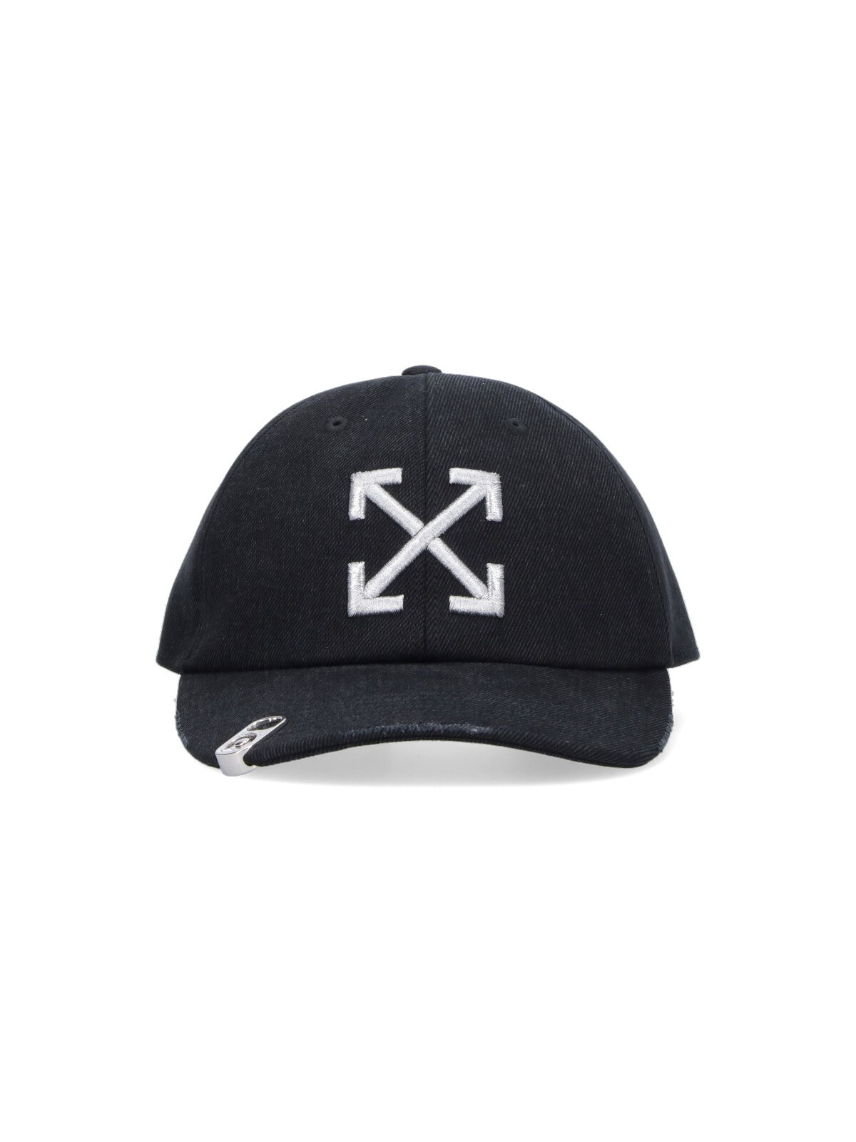 OFF WHITE LOGO BASEBALL CAP IN BLACK COTTON WITH CURVED VISOR, CONTRAST LOGO EMBROIDERY ON THE FRONT, HARDWARE DETAIL ON THE FRONT, ADJUSTABLE BACK. PRODUCT INFO PRODUCT CODE OMLA04AF25DEN0021372 COMPOSITION: 100% COTTON MADE IN: CHINA