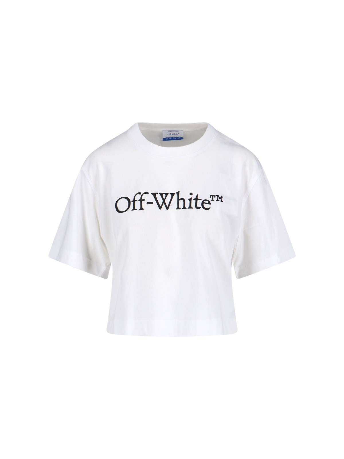 OFF WHITE CROP T-SHIRT IN WHITE COTTON WITH CREWNECK, SHORT SLEEVES, CONTRASTING LOGO PRINT ON THE FRONT, AND STRAIGHT HEM. PRODUCT INFO PRODUCT CODE OWAA090C99JER0040110 COMPOSITION: 100% COTTON SIZE AND FIT: CROPPED FIT MADE IN: PORTUGAL