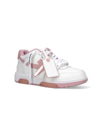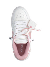 OFF-WHITE OUT OF OFFICE SNEAKERS IN WHITE LEATHER WITH ROUND TOE, LACES, ICONIC TAG DETAIL WITH ENGRAVED LOGO, LOGO PATCH ON TONGUE, CONTRAST LEATHER ARROW LOGO PATCH ON THE SIDE, CONTRASTING LEATHER BACK TAB, CONTRAST TRIM, WHITE LOGO PRINT DETAIL, RUBBER SOLE. PRODUCT INFO PRODUCT CODE W259C9L018WHITE PINK COMPOSITION: 89% CALF LEATHER, 11% RECYCLED POLYESTER MADE IN: CHINA - SOLE: 100% RUBBER - PRODUCT MADE FROM RECYCLED MATERIALS