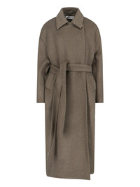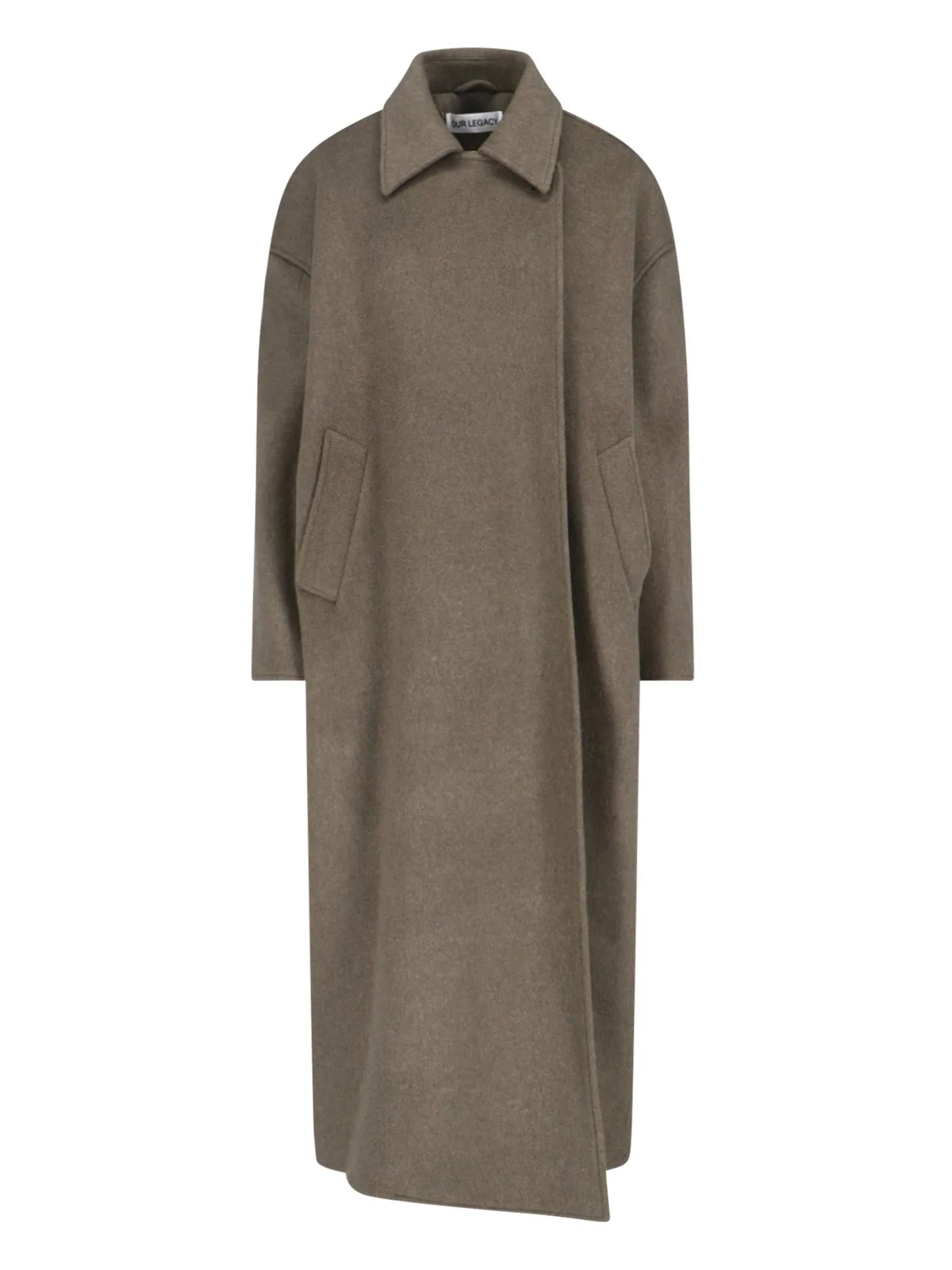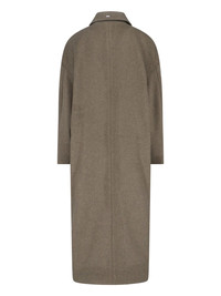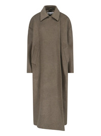 GREEN WOOL BLEND COURT COAT, CLASSIC COLLAR, CONCEALED BUTTON CLOSURE, TWO SIDE POCKETS, SILVER METAL LOGO AT THE BACK, STRAIGHT HEM. PRODUCT INFO PRODUCT CODE W4251CDDISRUPTIVE MOSS KILO MELTON COMPOSITION: 75% WOOL, 25% POLYESTER SIZE AND FIT: OVERSIZED FIT MADE IN: PORTUGAL