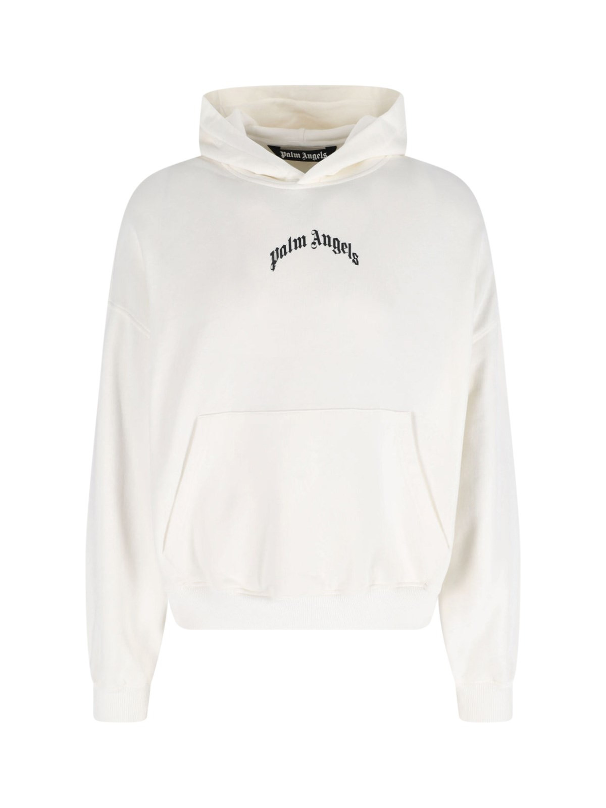 PALM ANGELS LOGO HOODIE IN WHITE COTTON WITH DROPPED SHOULDERS, CONTRAST LOGO PRINT ON THE FRONT, MAXI FRONT POCKET, CONTRAST LOGO PRINT ON THE BACK, RIBBED TRIM, STRAIGHT HEM. PRODUCT INFO PRODUCT CODE PMBB17EF25FLE0040310 COMPOSITION: 100% COTTON SIZE AND FIT: SOFT FIT MADE IN: PORTUGAL