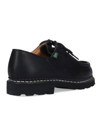 PARABOOT 'MICHAEL' DERBY SHOES IN BLACK NUBUCK WITH ROUND TOE, LACE-UP CLOSURE, SIDE LOGO LABEL, RUBBER SOLE. PRODUCT INFO PRODUCT CODE 715604NOIRE COMPOSITION: 100% CALF LEATHER MADE IN: FRANCE - SOLE: 100% RUBBER