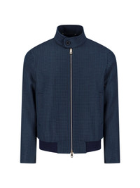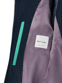 PAUL SMITH ZIP JACKET IN BLUE WOOL BLEND WITH HOUNDSTOOTH PATTERN, HIGH NECK, BUTTON AND DOUBLE ZIP CLOSURE, TWO SIDE POCKETS, INNER FLAT POCKET, BACK STUDS DETAIL, STRAIGHT ELASTIC HEM. PRODUCT INFO PRODUCT CODE 603Z T0280847 COMPOSITION: 50% WOOL, 50% NYLON SIZE AND FIT: REGULAR FIT MADE IN: ITALY
