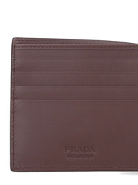 PRADA BI-FOLD LOGO WALLET IN BROWN 'SAFFIANO' CALF LEATHER WITH TRIANGLE METAL ENAMEL LOGO ON THE FRONT, EIGHT INTERNAL CARD SLOTS, AND AN INNER BILL COMPARTMENT. PRODUCT INFO PRODUCT CODE 2MO513 2E54F0038 COMPOSITION: 100% CALF LEATHER SIZE AND FIT: H 9.5 X W 11 CM MADE IN: ITALY
