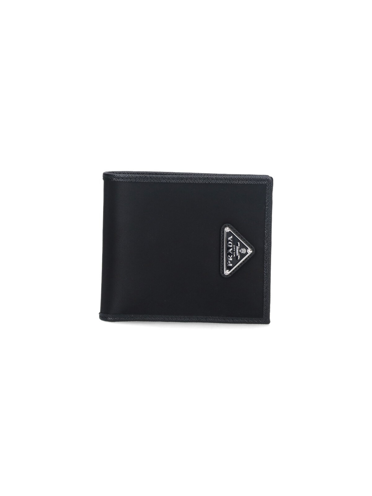 PRADA BIFOLD LOGO WALLET IN BLACK RE-NYLON WITH SAFFIANO LEATHER TRIM, TRIANGLE ENAMELED METAL LOGO ON THE FRONT, EIGHT INTERNAL CARD SLOTS, TWO SEPARATE INTERNAL BILL COMPARTMENTS. PRODUCT INFO PRODUCT CODE 2MO513 2DMHF0002 COMPOSITION: 100% POLYAMIDE SIZE AND FIT: H 9.5 X L 11 CM MADE IN: ITALY - TRIMS: 100% SAFFIANO LEATHER - PRODUCT MADE FROM RECYCLED MATERIALS