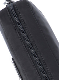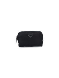 PRADA 'RE-NYLON' POUCH IN BLACK RECYCLED NYLON WITH ZIP CLOSURE, REMOVABLE WRIST STRAP, ENAMELED TRIANGLE LOGO ON THE FRONT, MAIN INNER COMPARTMENT. PRODUCT INFO PRODUCT CODE 1NS021 R067F0002 COMPOSITION: 100% RECYCLED NYLON SIZE AND FIT: H 11 X W 17 X D 5 CM MADE IN: ITALIA - PRODUCT MADE FROM RECYCLED MATERIALS