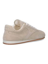 PRADA GREY SUEDE SNEAKERS WITH ROUND TOE, LACE-UP CLOSURE, TONAL LOGO ON THE TONGUE, GOLD LOGO PRINT ON THE SIDE, LOGO DETAIL ON THE BACK TAB, RUBBER SOLE. PRODUCT INFO PRODUCT CODE 1E152O 020 054F0D32 COMPOSITION: 100% CALF LEATHER MADE IN: ITALIA - SOLE: 100% RUBBER