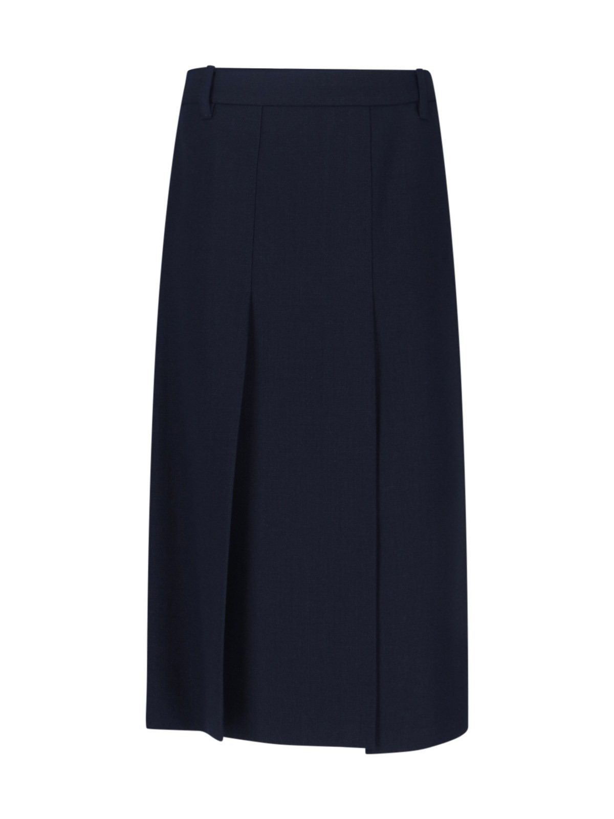 PRADA VIRGIN WOOL SKIRT IN NAVY BLUE, MID WAIST, BELT LOOPS, SIDE ZIP CLOSURE, MAXI SIDE SPLIT, STRAIGHT HEM. PRODUCT INFO PRODUCT CODE P117Z OOO 17VZF0008 COMPOSITION: 100% VIRGIN WOOL SIZE AND FIT: REGULAR FIT MADE IN: ITALY