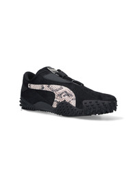 PUMA "MOSTRO" SNEAKERS IN BLACK LEATHER WITH SNAKE PRINT PATTERN, ROUND TOE, STRAP CLOSURE, CONTRAST LOGO DETAIL, LOGO PATCH ON THE TONGUE, SILVER SIDE INSERTS, EMBOSSED CONTRAST LOGO ON THE BACK TAB, TEXTURED RUBBER SOLE. PRODUCT INFO PRODUCT CODE 40649701 COMPOSITION: 100% LEATHER MADE IN: CHINA - SOLE: 100% RUBBER