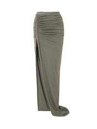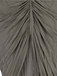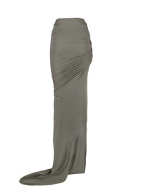 RICK OWENS ASYMMETRICAL MINI SKIRT IN GRAY COTTON WITH DRAPED DETAILS, SLIP-ON DESIGN, HIGH WAIST ELASTIC, DEEP SIDE SPLIT, RUFFLE ON THE HEM, ASYMMETRICAL HEM. PRODUCT INFO PRODUCT CODE RO01E7366 UCDB34 COMPOSITION: 100% COTTON SIZE AND FIT: SLIM FIT MADE IN: ITALY