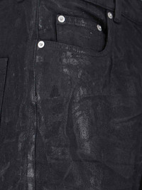 RICK OWENS BOOTCUT JEANS IN BLACK COTTON WITH METALLIC EFFECT, MID WAIST, BELT LOOPS, SIX-POCKET DESIGN, BUTTON CLOSURE, WIDE LEG. PRODUCT INFO PRODUCT CODE RR02E1335 BMC09 COMPOSITION: 100% COTTON SIZE AND FIT: REGULAR FIT MADE IN: ITALY