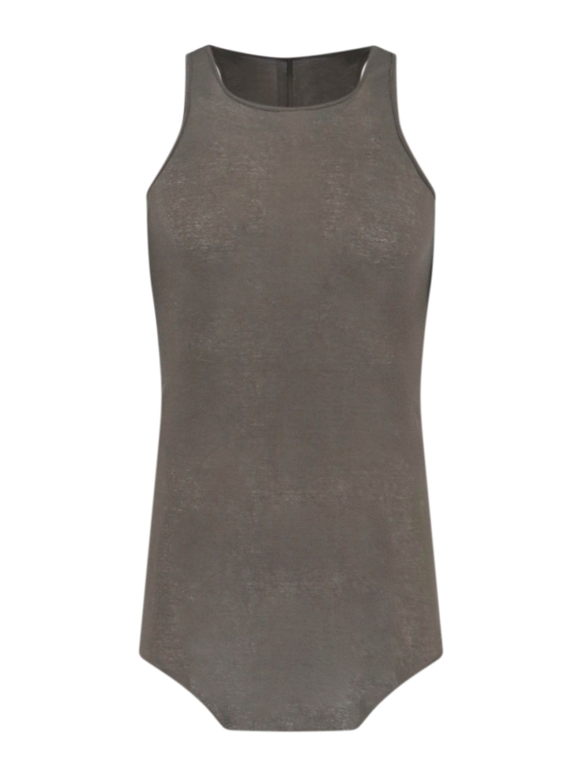 RICK OWENS CLASSIC TANK TOP IN GREEN COTTON WITH CREW NECK, CURVED HEM. PRODUCT INFO PRODUCT CODE RU02E1150 MR25 COMPOSITION: 100% COTTON SIZE AND FIT: REGULAR FIT MADE IN: ITALY