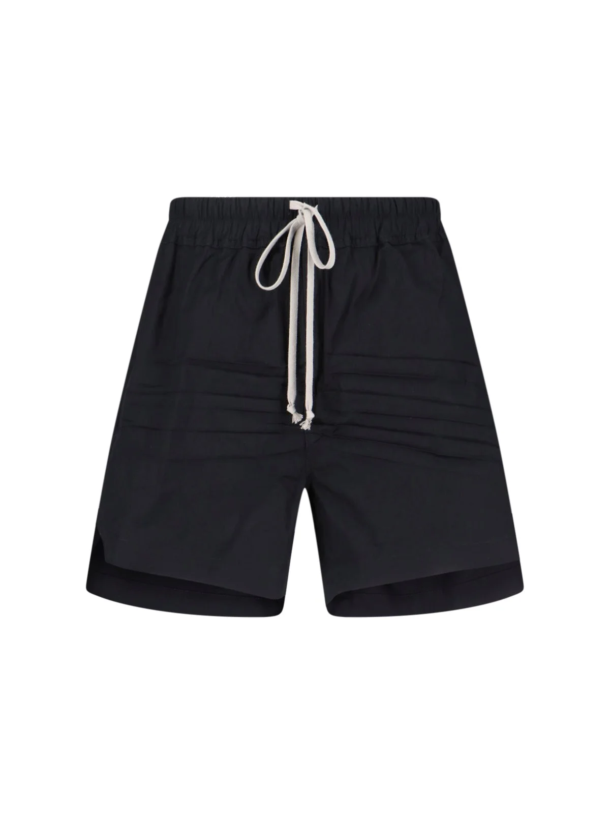 RICK OWENS BLACK COTTON SHORTS WITH ELASTIC MID WAISTBAND, DRAWSTRING AT THE WAIST, TWO SIDE POCKETS, STRAIGHT LEG. PRODUCT INFO PRODUCT CODE RR01F2315 TE09 COMPOSITION: 97% COTTON, 3% ELASTANE SIZE AND FIT: REGULAR FIT MADE IN: ITALY