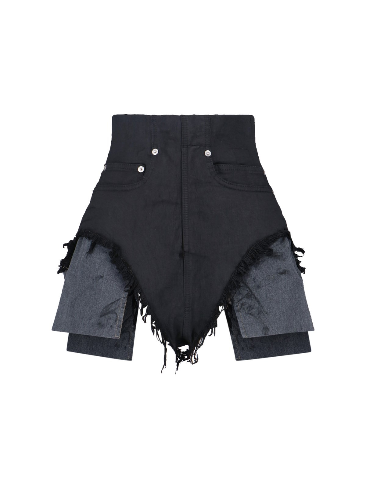 RICK OWENS DRKSHDW CONCORDIANS HIGH-WAISTED BLACK COTTON SHORTS WITH BACK ZIP CLOSURE, FIVE-POCKET DESIGN, SIDE SLITS, UNEVEN FRAYED HEM, GRAY DUST BAG INCLUDED. PRODUCT INFO PRODUCT CODE DS02E7313 SBW99X COMPOSITION: 91% COTTON, 6% ELASTOMULTIESTER, 3% RUBBER SIZE AND FIT: SLIM FIT MADE IN: ITALY