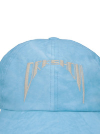 RICK OWENS DRKSHDW LIGHT BLUE 'HOLLYWOOD' DENIM BASEBALL CAP WITH CURVED VISOR, CREAM LOGO EMBROIDERY ON THE FRONT, ADJUSTABLE STRAP STRAP ON THE BACK. PRODUCT INFO PRODUCT CODE DA01E3478 PFEM108608 COMPOSITION: 100% COTTON MADE IN: ITALY
