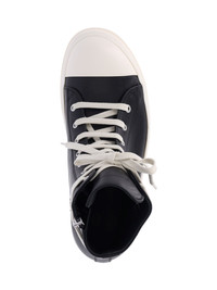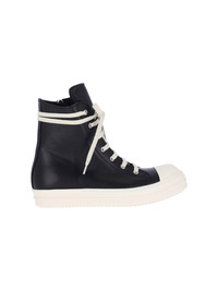 RICK OWENS "HIGH-TOP" SNEAKERS IN BLACK CALF LEATHER WITH ROUND TOE, LACE CLOSURE AND SIDE ZIP, ANKLE LACE DETAIL, RUBBER SOLE. PRODUCT INFO PRODUCT CODE RU01F2890 LCO911 COMPOSITION: 100% CALF LEATHER MADE IN: ITALY - SOLE: 100% RUBBER