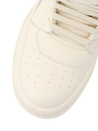 RICK OWENS "MEGA GEOBASKET" HIGH-TOP SNEAKERS IN WHITE CALF LEATHER WITH TONE-ON-TONE DETAILS, ROUND TOE, LACES, MAXI TONGUE, TAB ON THE BACK WITH STITCHING DETAIL, RUBBER PLATFORM SOLE. PRODUCT INFO PRODUCT CODE RR02E1855 LCO1111 COMPOSITION: 100% CALF LEATHER SIZE AND FIT: HEEL 6.5 CM MADE IN: ITALY - SOLE: 100% RUBBER