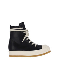 RICK OWENS DRKSHDW HIGH-TOP SNEAKERS IN BLACK CALF LEATHER WITH OVER-ANKLE LACING DESIGN, ROUND TOE, LACES, SIDE ZIP CLOSURE, CONTRAST RUBBER SOLE. PRODUCT INFO PRODUCT CODE RP02E4830 LCO911 COMPOSITION: 100% CALF LEATHER MADE IN: ITALY - SOLE: 100% RUBBER