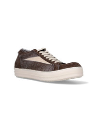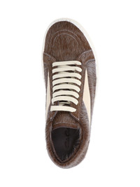 RICK OWENS "HOLLYWOOD VINTAGE" SNEAKERS IN BROWN PONY HAIR WITH BEIGE SUEDE TRIM, ROUND TOE, LACES CLOSURE, RUBBER SOLE. PRODUCT INFO PRODUCT CODE RR02E1897 LHLCLV10611 COMPOSITION: 100% CALF LEATHER MADE IN: ITALY - SOLE: 100% RUBBER