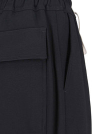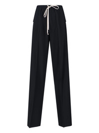 RICK OWENS BLACK VISCOSE BLEND TRACK PANTS WITH DRAWSTRING CLOSURE, ELASTIC WAISTBAND, TWO SIDE WELT POCKETS, TWO BACK BUTTON POCKETS, HORN BUTTON DETAIL, STRAIGHT LEG. PRODUCT INFO PRODUCT CODE RP02E4325 HY09 COMPOSITION: 53% VISCOSE, 47% ACETATE SIZE AND FIT: REGULAR FIT MADE IN: ITALY - TRIMS: 100% HORN