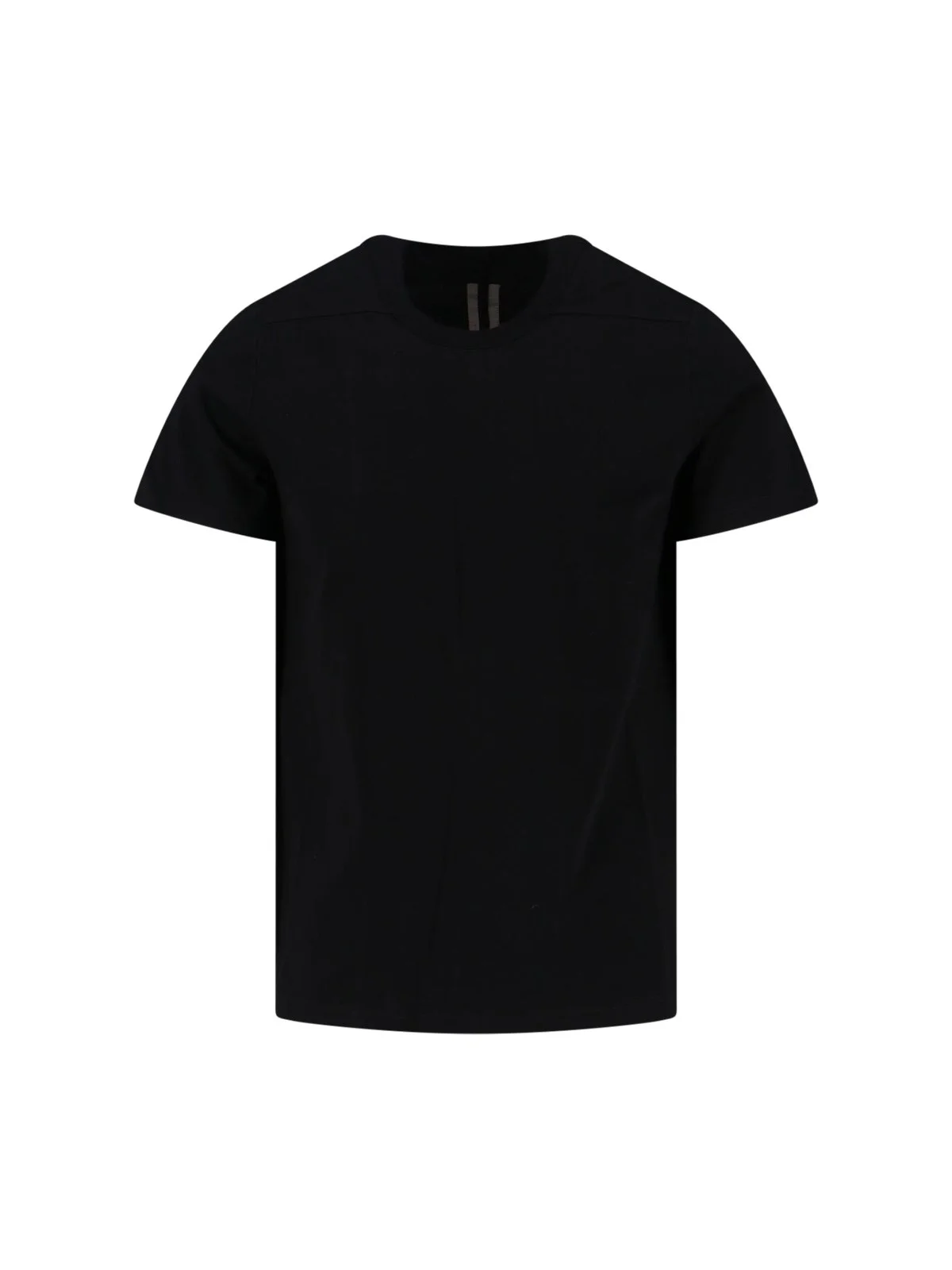 RICK OWENS LEVEL T BLACK COTTON CREW NECK T-SHIRT WITH SHORT SLEEVES, STRAIGHT HEM. PRODUCT INFO PRODUCT CODE RU01F2265 JA09 COMPOSITION: 100% COTTON SIZE AND FIT: REGULAR FIT MADE IN: ITALY