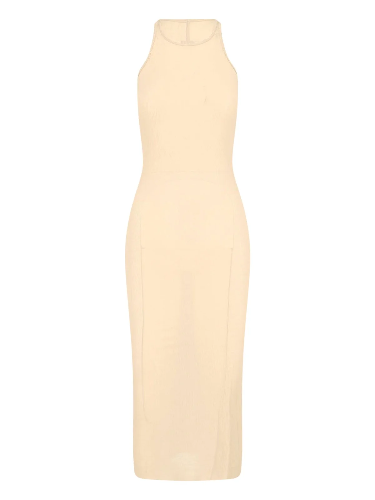 RIK OWENS RIBBED VISCOSE AND SILK MIDI DRESS WITH CREW NECK, SLEEVELESS, STRAIGHT HEM. PRODUCT INFO PRODUCT CODE RP01F6549 RC138 COMPOSITION: 88% VISCOSE, 12% SILK SIZE AND FIT: SLIM FIT MADE IN: ITALY