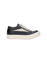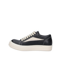 RICK OWENS "VINTAGE" LOW-TOP SNEAKERS IN BLACK CALF LEATHER WITH ROUND TOE, LACE-UP CLOSURE, CONTRASTING SIDE DETAIL, RUBBER SOLE. PRODUCT INFO PRODUCT CODE RP01F6888 LCOLVS911 COMPOSITION: 100% LEATHER MADE IN: ITALY - SOLE: 100% RUBBER