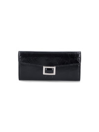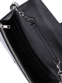 ROGER VIVIER 'BELLE VIVIER' CHAIN WALLET IN BLACK PATENT CALF LEATHER WITH REMOVABLE SILVER METAL CHAIN SHOULDER STRAP, MAGNETIC STRAP FLAP CLOSURE, SILVER METAL LOGO BUCKLE DETAIL, BACK FLAT POCKET, SIX INNER CARD SLOTS, INNER FLAT POCKET, INNER ZIP COIN POCKET, MAIN INNER COMPARTMENT. PRODUCT INFO PRODUCT CODE RAWAWSB4400UKPB999 COMPOSITION: 100% CALF LEATHER SIZE AND FIT: H 10.5 X W 22 X D 4 CM MADE IN: ITALY