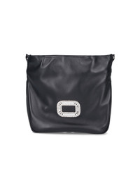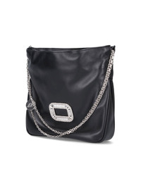 ROGER VIVIER 'PILGRIM' MINI BAG IN BLACK NAPPA LEATHER WITH DOUBLE CHAIN SHOULDER STRAP IN SILVER METAL, ENAMELLED METAL LOGO CHARM DETAIL, SILVER METAL LOGO BUCKLE ON THE FRONT, CRYSTAL RHINESTONE DETAILS, INNER SLIP POCKET, SINGLE INNER COMPARTMENT. PRODUCT INFO PRODUCT CODE RBWABDK0100YDRB999 COMPOSITION: 100% LEATHER SIZE AND FIT: H 21 X W 23 X D 5 CM MADE IN: ITALY - DETAILS: 100% CRYSTAL