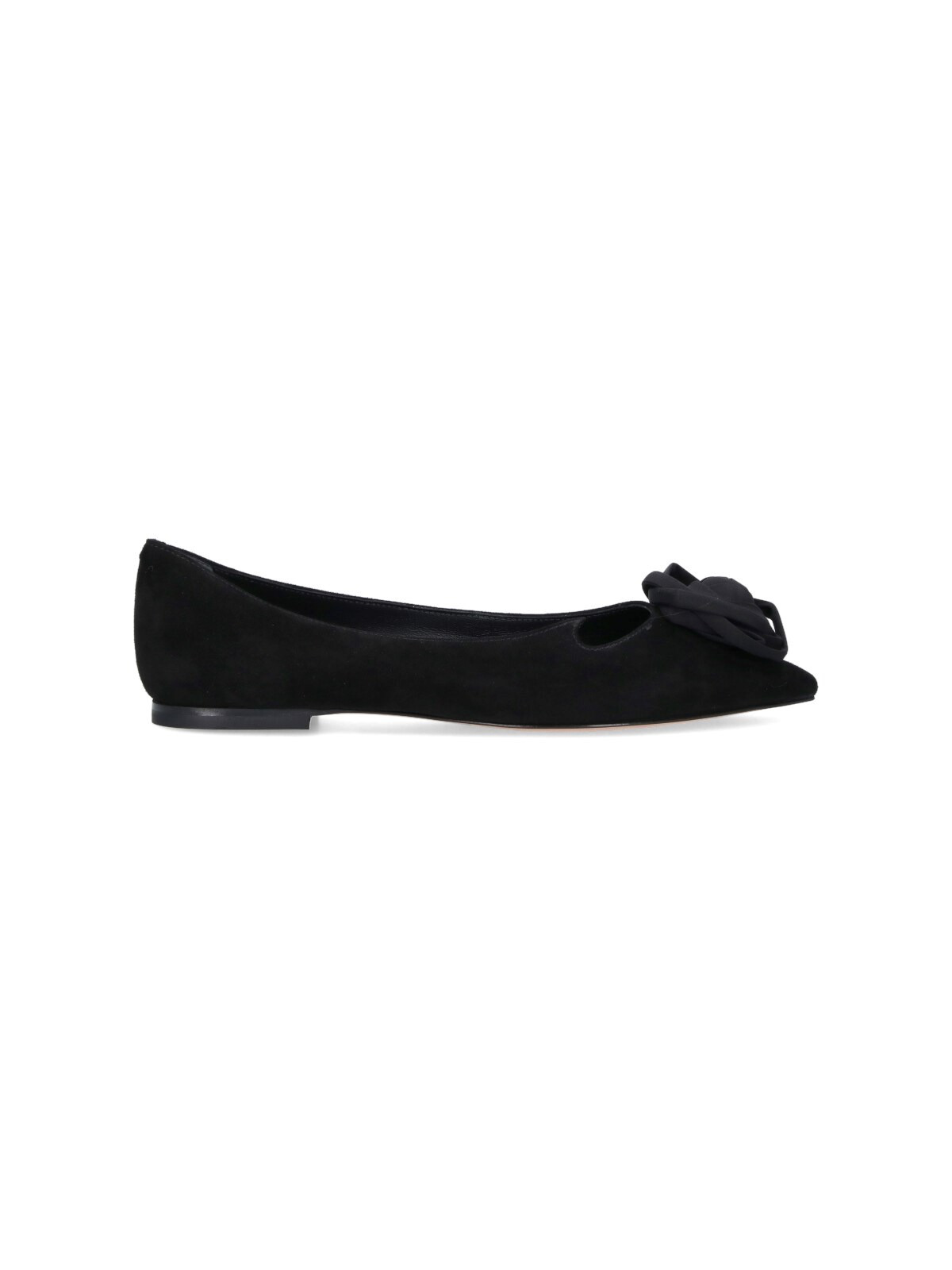 ROGER VIVIER "ROSE VIVIER" BALLET FLATS IN BLACK SUEDE WITH POINTED TOE, TONE-ON-TONE TOP "ROSE" DETAIL, SLIP-ON FIT, LEATHER SOLE. PRODUCT INFO PRODUCT CODE RVW50243560UVNB999 COMPOSITION: 100% GOAT LEATHER MADE IN: ITALY - SOLE: 100% LEATHER