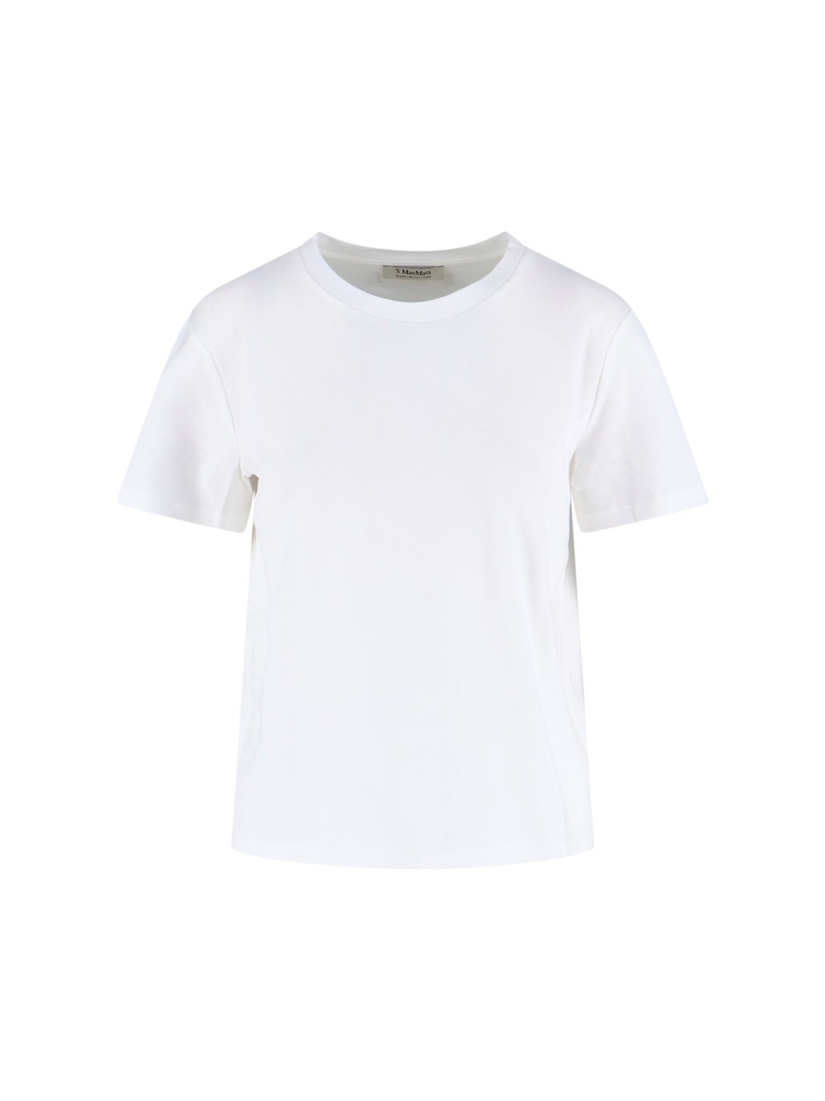 'GEMMA'S MAX MARA WHITE COTTON CREW NECK T-SHIRT WITH SHORT SLEEVES, LOGO LABEL AT THE BACK, STRAIGHT HEM. PRODUCT INFO PRODUCT CODE 2529976041600001 COMPOSITION: 100% COTTON SIZE AND FIT: REGULAR FIT MADE IN: TUNISIA